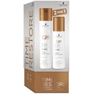 Pack Dúo Time Restore Bonacure Schwarzkopf está compuesto por el Champú Time Restore 250ml + Spray Acondicionador Time Restore 200ml.