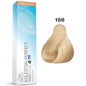 El Tinte Koleston Perfect INNOSENSE 10-0 Wella Rubio Intenso Super Claro Pure Naturals 60ml es un tinte de coloración permanente en crema único en el mercado con el sello ECARF para reducir alergias con el que se consigue un color totalmente natural del cabello autenticamente perfecto, intenso y vibrante gracias a la máxima calidad de sus ingredientes y respetando la estructura del cabello.